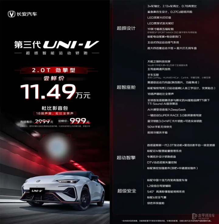 新款长安UNI-V开启预售 尝鲜价11.49万元